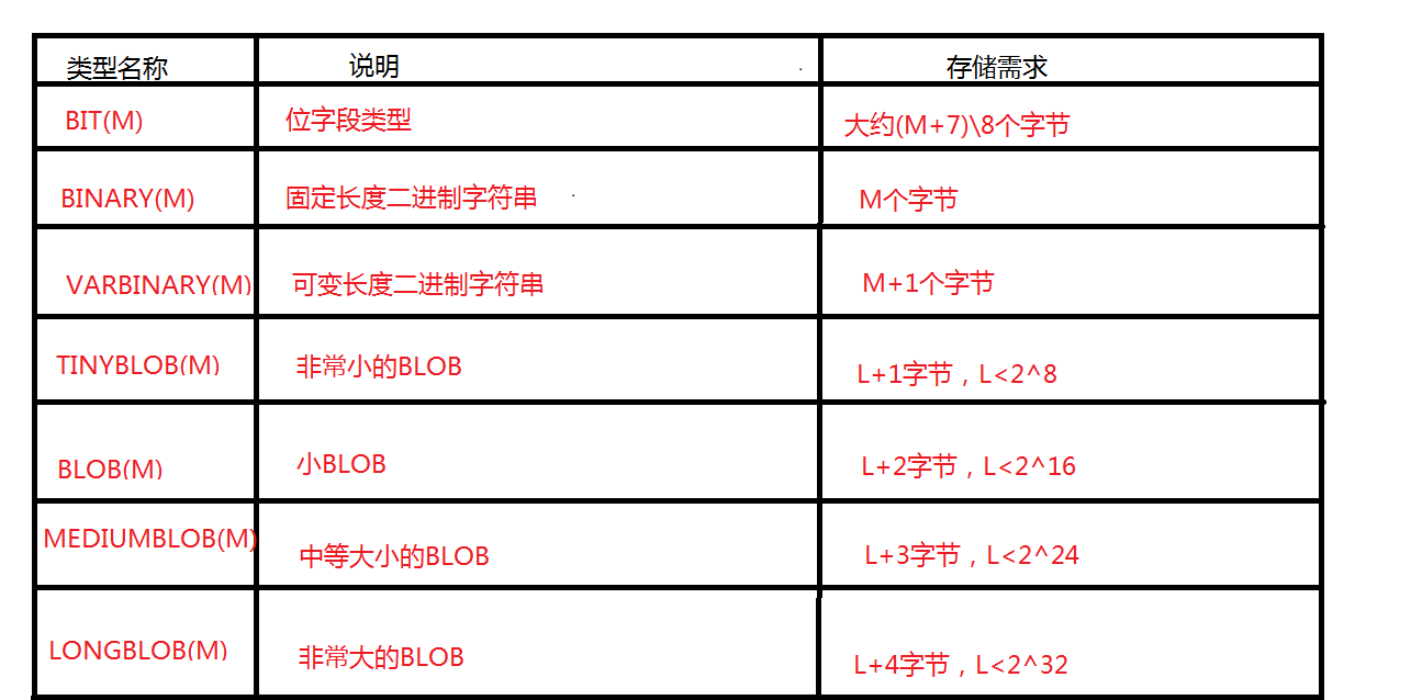 用来存放二进制数,也就是01010这种。有BIT、BINARY、VARBINARY、TINYBLOB、BLOB、MEDIUNBLOB和LONGBLOB
