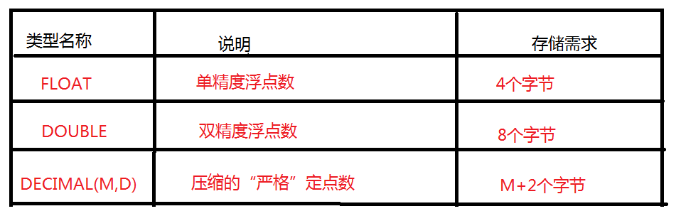 浮点数FLOAT、DOUBLE相对应定点数DECIMAL的优势在于:在长度一定的情况下,浮点数能表示更大的数据范围,但是浮点数容易产生误差,因此在精度比较高时,建议使用DECIMAL,比如货币这一类东西,就用DECIMAL比较合理,注意浮点数在进行加减运算时也容易出现问题。如果进行数值比较,也建议用DECIMAL