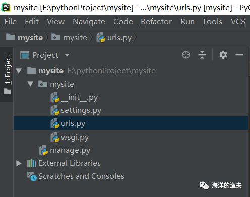 可以看到项目已经自动创建了不少目录了,其中里面存在了一个mysite的文件夹。