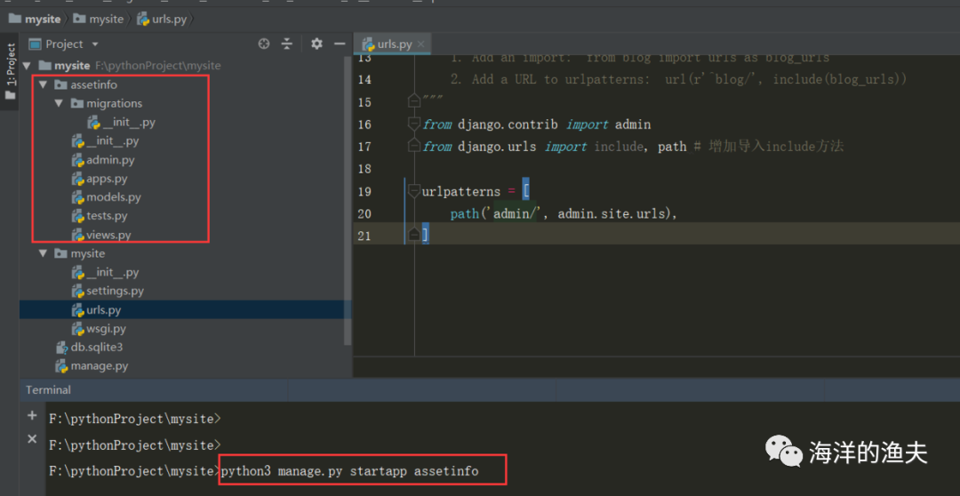 创建应用的命令如下:python3 manage.py startapp assetinfo