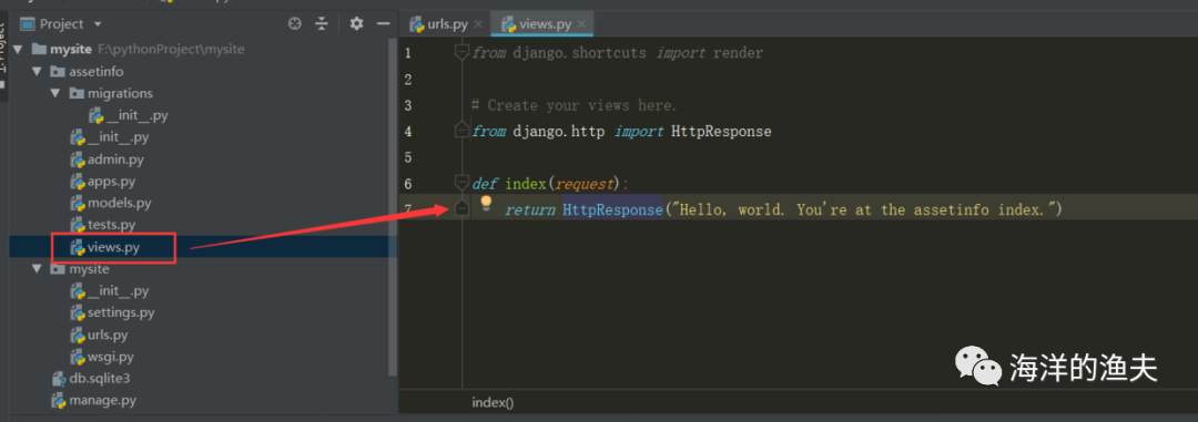 让我们开始编写第一个视图吧。打开 assetinfo/views.py,把下面这些 Python 代码输入进去: