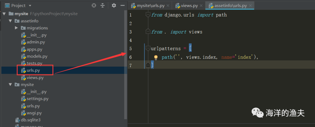 为了创建 URLconf,请在 assetinfo 目录里新建一个 urls.py 文件。你的应用目录现在看起来应该是这样: