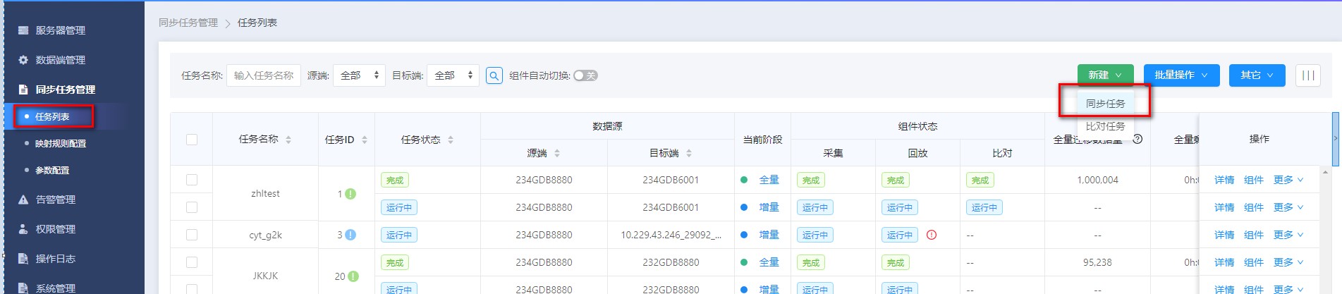 3)在任务列表页面,点击右上角上面的 新增 ,新增一个同步任务。