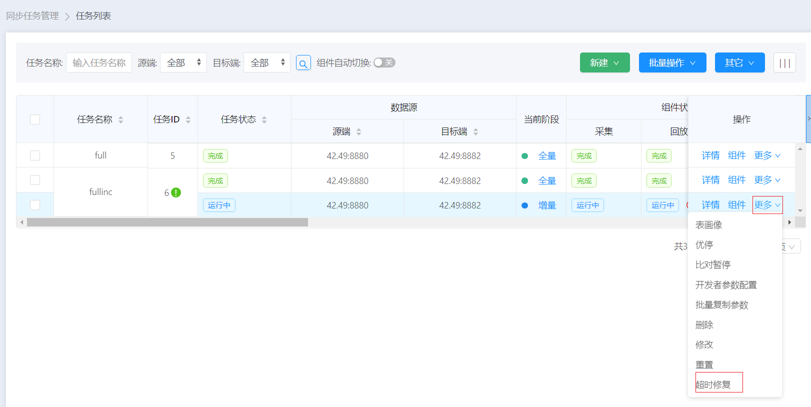 - 对于全量加增量任务,只有在全量任务完成后且已有增量数据同步时,才能执行修复操作。
