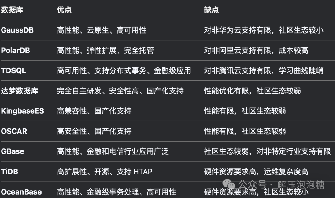 国产数据库近年来发展迅速,逐渐在国内外市场中占据一席之地。以下是一些主流的国产数据库及其优缺点: