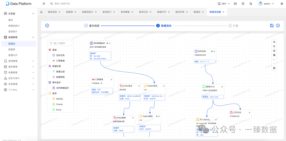 现在,这些工作可以在5分钟内完成,而且只需3个动作:拖-拉-拽,并且支持Doris、MySQL、Oracle、Kafka等数据源。