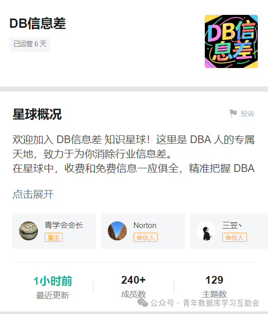 在这里,我们诚邀您加入 DB信息差知识星球,这里是 DBA 人的专属天地,致力于为你消除行业信息差。