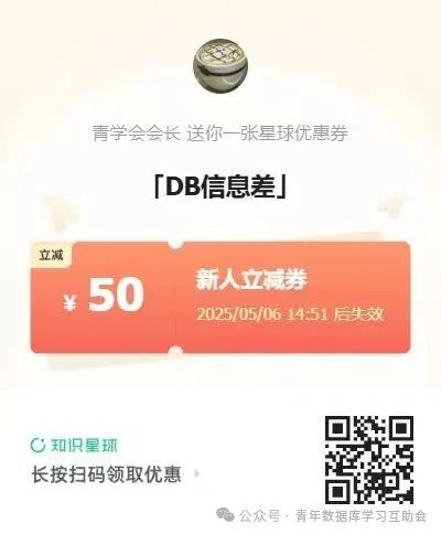 现在加入 DB信息差知识星球,开启你的 DBA 专属之旅,5月6日前可享受50元优惠。