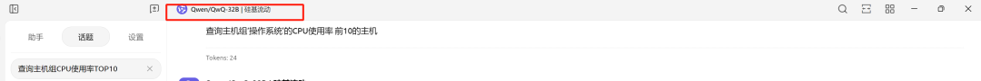 按照预览示例中输入的问题进行提问“查询'操作系统'的'CPU使用率'前10的主机“,呈现效果如下: