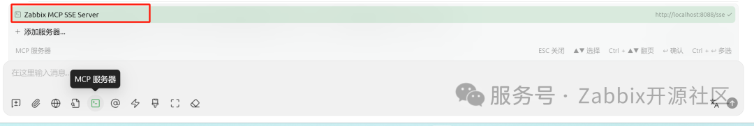 助手工具菜单中MCP服务器选择“Zabbix MCP SSE Server”