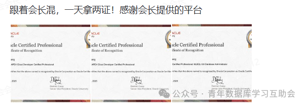 4月25日开始mysql ocp可以免费考试,可是振奋人心的事情啊,昨天我们的小伙伴也拿到了两个证书,分别是Mysql和APEX的OCP认证,首先恭喜他了。