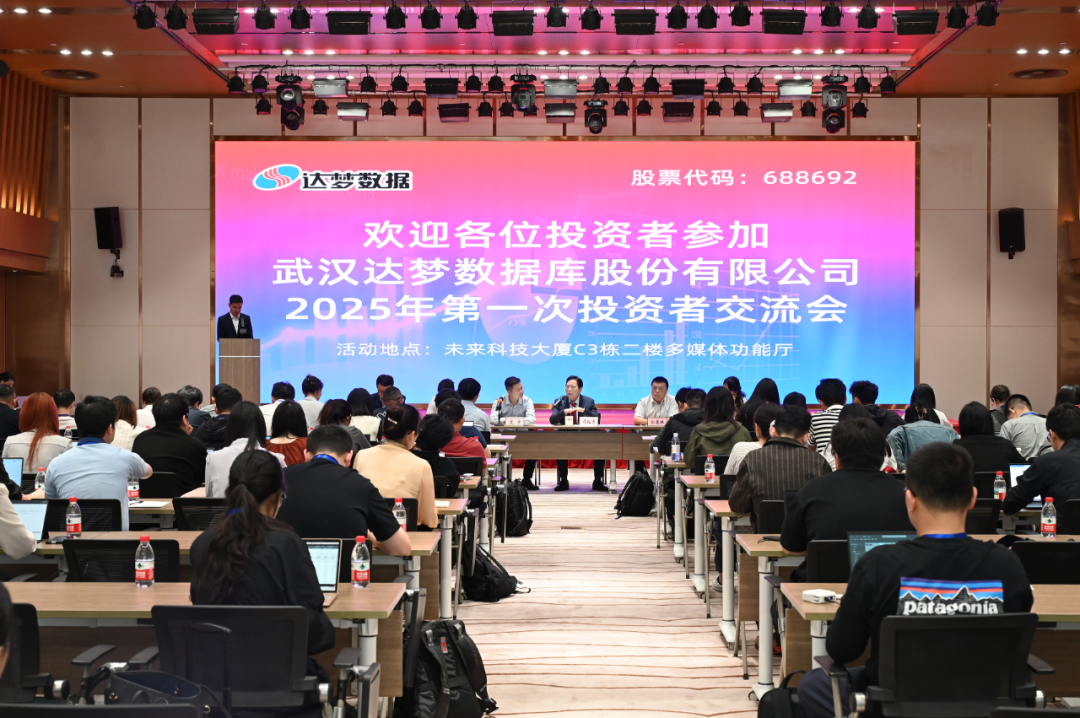2025年4月29日,为进一步加强与投资者的互动交流,传递公司价值,达梦数据(股票代码:688692)组织召开了《武汉达梦数据库股份有限公司2025年第一次投资者交流会》,公司董事长冯裕才、董事兼总经理皮宇、高级副总经理兼董事会秘书周淳、财务负责人孙巍琳、副总经理冯源、证券事务代表卜京红等相关人员出席本次会议,与75名机构及个人投资者进行现场交流。
