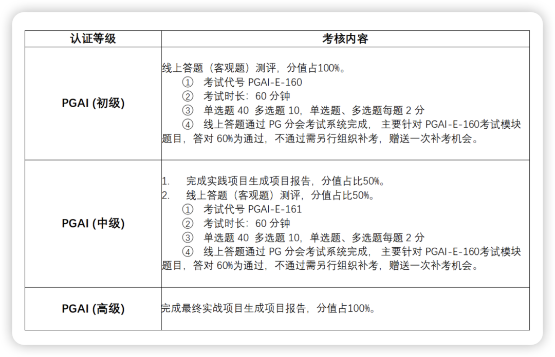 级别 | PGAI初级工程师 | PGAI中级工程师 | PGAI高级工程师 |