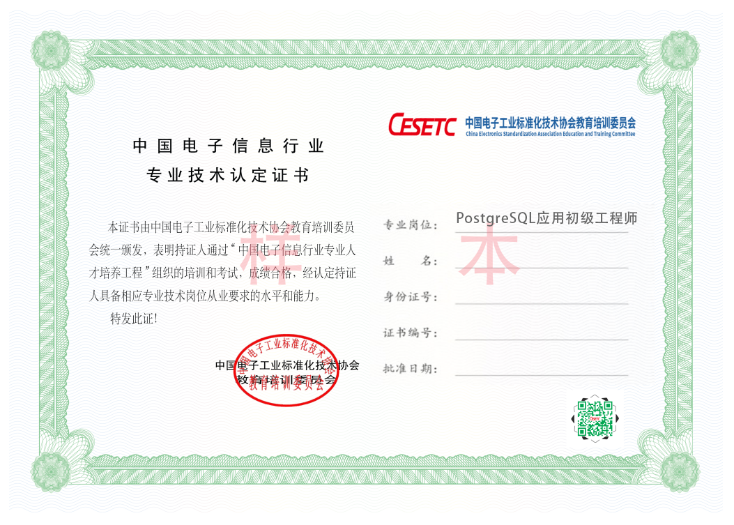 学员通过培训和认证考核后,可获得由PG分会和中国电子工业标准化协会授予的相应等级证书。正式样式如下: