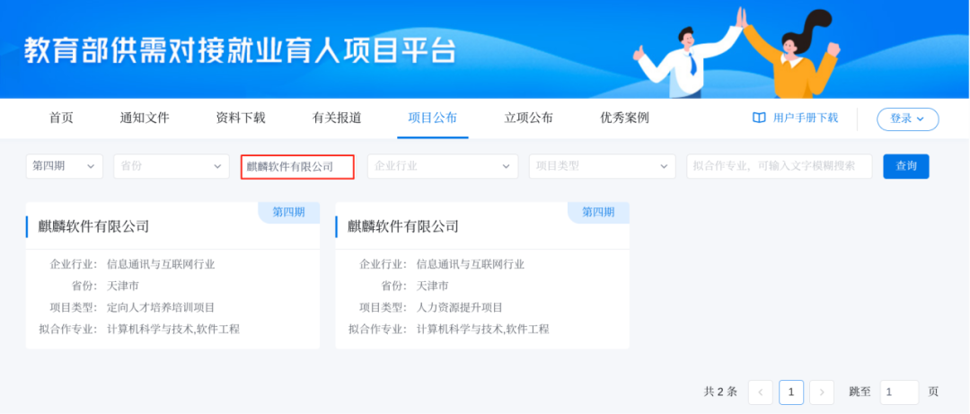 自2021年参与教育部供需对接就业育人项目以来,麒麟软件累计与北京航空航天大学、天津大学、南开大学、东北大学等51所高校成功立项86个项目。其中与北京航空航天大学、天津理工大学合作的两项项目,从全国20000余项校企合作项目中脱颖而出,成功入选教育部供需对接就业育人优秀案例。