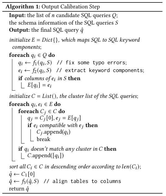 3.输出校准:通过对SQL进行后处理来提高生成的SQL的正确性。