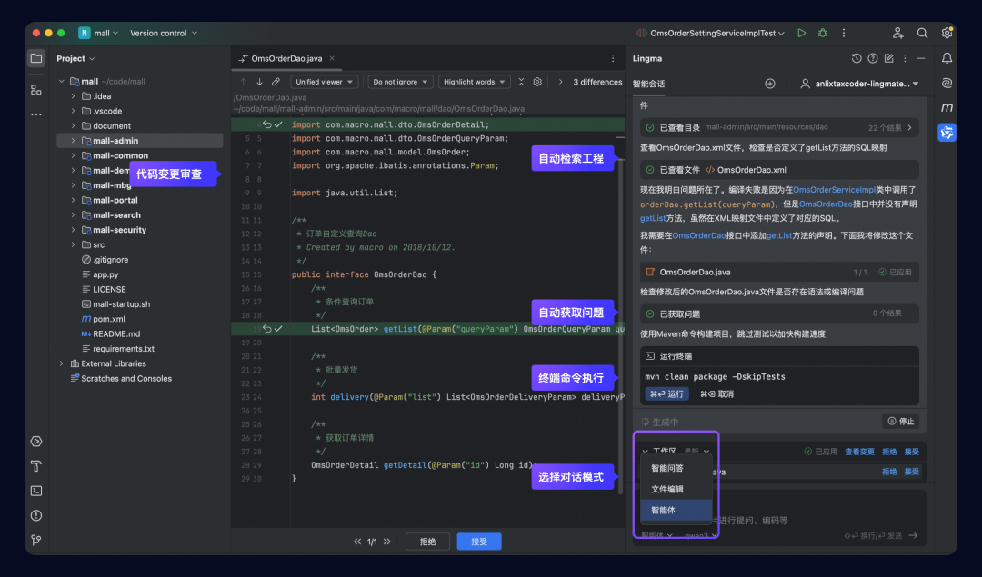 (如需体验智能体模式,需在 VS Code、JetBrains IDEs 中,将通义灵码插件升级到 2.5.0 或以上版本)
