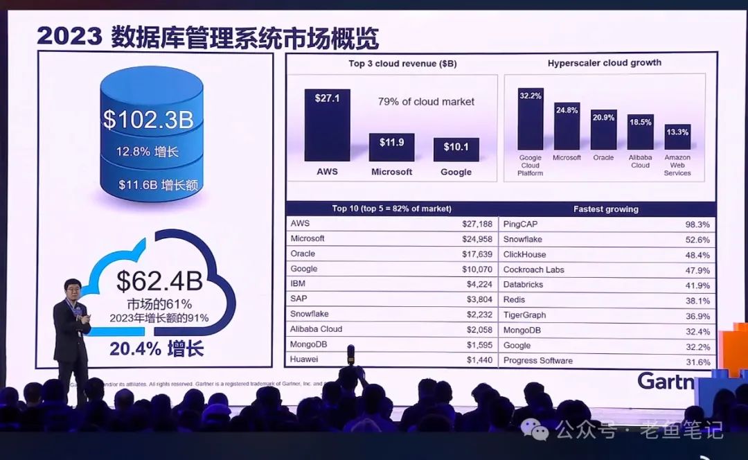 2月26日,Gartner在阿里云PolarDB开发者大会上公布了2023年全球前十强数据库厂商的营收数据,中国两家企业成功跻身榜单,这个消息想必让很多人记忆深刻。
