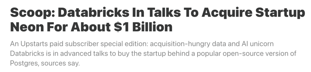 而现在,Neon 已经到了收获的时刻。Upstarts 透露,Databricks 拟以 1B 的估值洽谈收购 Neon。