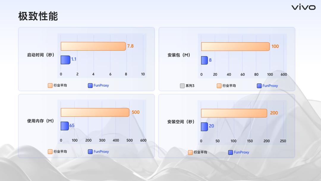 我们对比了市场上主流的抓包软件,无论从安装包大小、启动时间、安装空间、使用内存来说,FunProxy 都有非常大的优势。