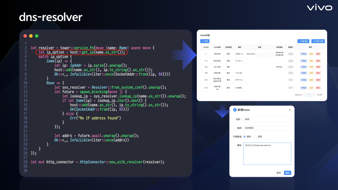 在中间人方案中如何实现虚拟Hosts能力?我们在定义client的时候,可以定义一个resolver。这个resolver在每次hosts解析的时候都会调用。