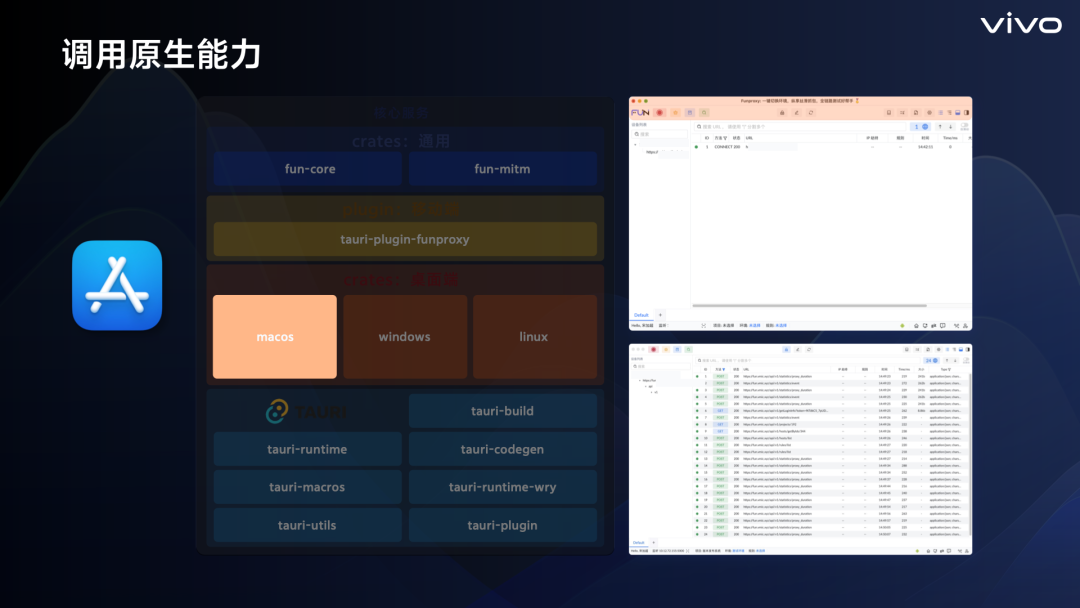 因为有些端的功能可能需要调用系统特定的能力,在移动端我们封装了tauri-plugin-funproxy来调用移动端的特定能力,比如VPN。