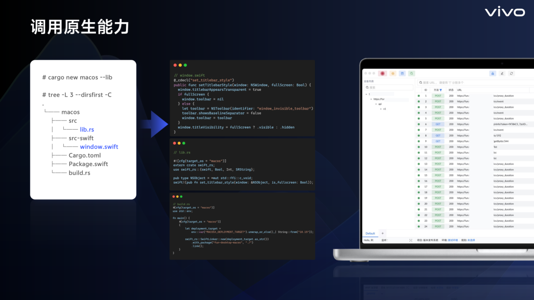 其他在各个桌面端我们封装了各个系统的核心crates来调用桌面端的特定能力。其他能力则是通过Rust直接调用。