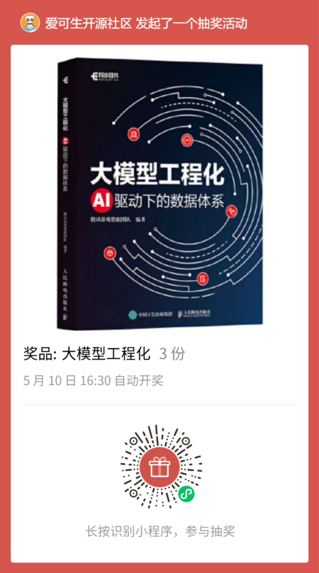 关注爱可生开源社区公众号的用户均可参加; 用户可扫描下方活动程序码,参与抽奖;