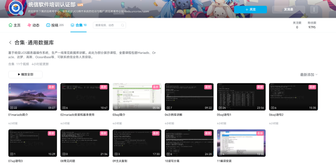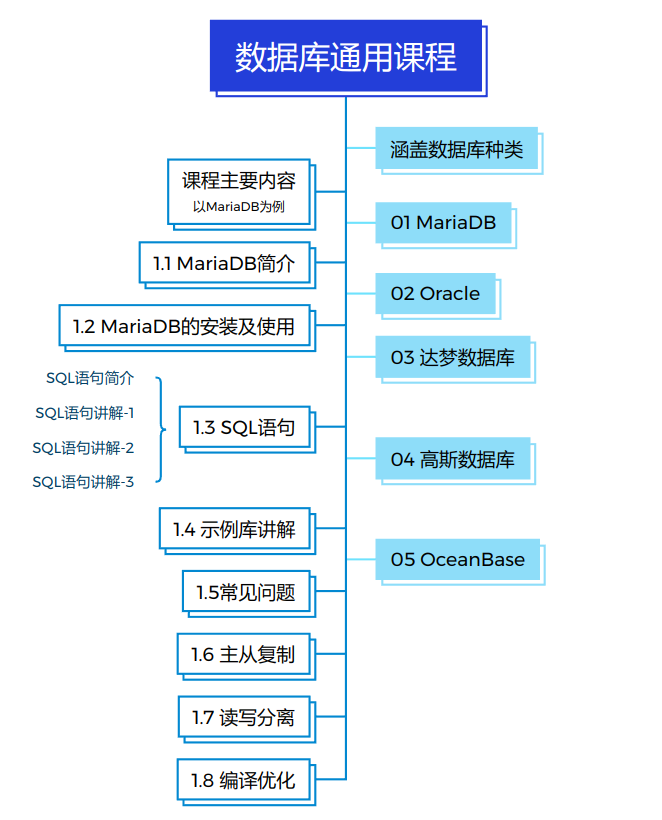 《统信通用数据库视频课程》是 IT 类技术核心课程,课程涵盖了市面常见的几种开源及商用数据库,包括 MariaDB、Oracle、达梦、高斯、OceanBase,侧重其在信创操作系统环境下的实操与应用。