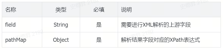 pathMap: 每个结果字段与需要属性对应的 XPath 路径 source_field: XML 字符串字段名