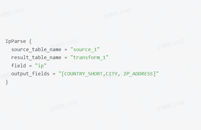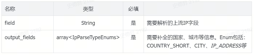 ip_field: IP 源字段output_fields: 需要提取的地理字段(如国家、城市)