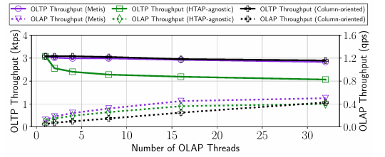 不同的是,METIS还旨在保持工作负载之间的性能隔离,这是HTAP特有的需求。