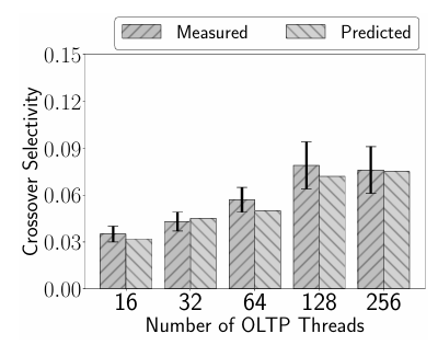 分布式HTAP数据库通常通过单独的增量存储来支持对读优化的列存储(即用于读取的数据副本)进行及时更新。增量存储不断累积更新,并定期将其合并到列存储中。这种架构使得传统的成本模型在评估数据访问路径成本时不够精确:访问路径选择没有固定的选择性阈值;相反,选择取决于工作负载的动态性(即写操作的并发性)。