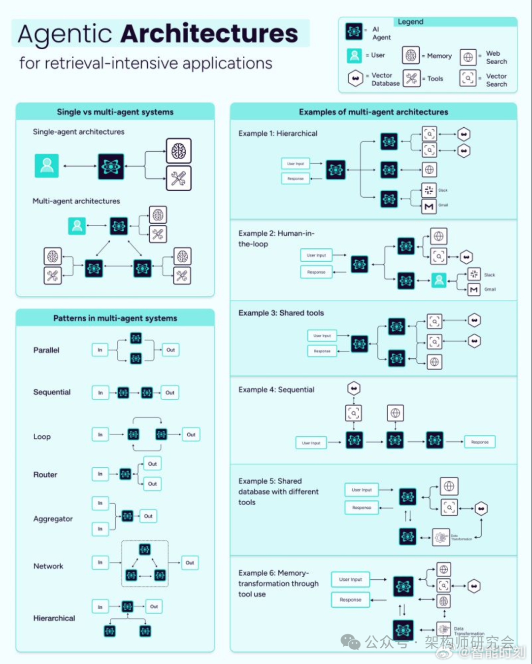 ▸ 聚合模式:知识融合器整合多源输出(如投研报告自动生成)