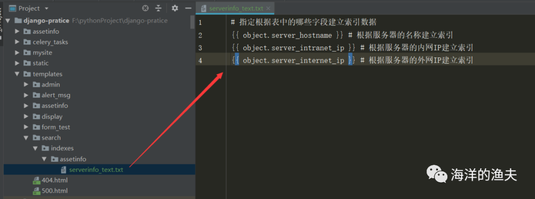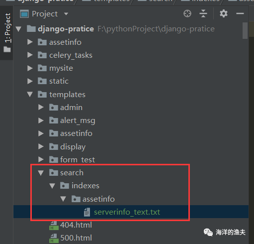 2)在templates目录下创建"search/indexes/assetinfo/"目录,在目录中创建"serverinfo_text.txt"文件