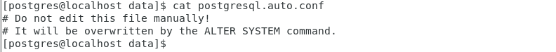对于postgresql.auto.conf配置文件,一开始除了两行文本注释说明之外,没有其他的配置参数。如下图所示: