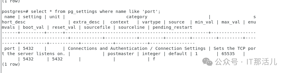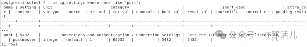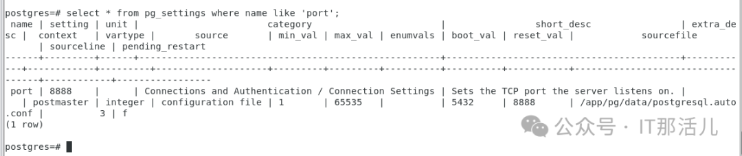 然后通过pg_settings查看端口参数情况,看到已经生效。