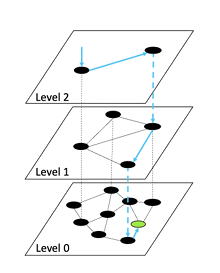围绕单个区域聚类。在这两种情况下,每个节点的预期度至少为M,并且每一层近似于一个KNN图,当