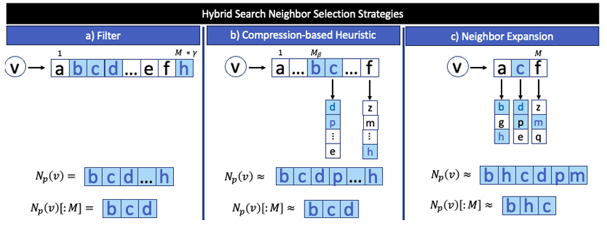 具体来说,ACORN-γ使用两种邻居查找策略:一种是简单的过滤方法,如上图(a)所示;另一种是基于压缩的启发式方法,如上图(b)所示。