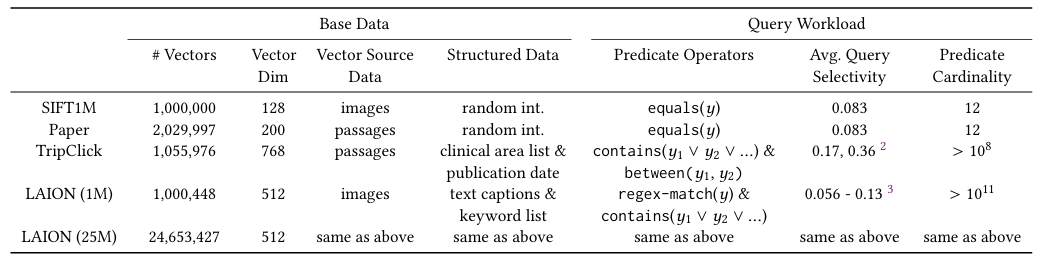2 具有高基数谓词集的数据集:HCPS数据集的实验中使用TripClick和LAION数据集。