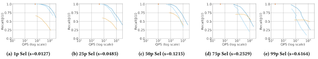 尽管这些方法中的每个都进行了优化的过滤步骤,但预过滤和后过滤的核心问题仍然存在,特别是对于低相关性或低选择性的谓词。