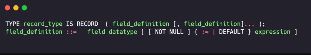 定义一个RECORD类型,然后声明该类型的变量;