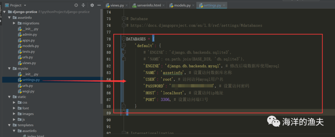 好了,下一步就是在Django项目中配置访问mysql服务。