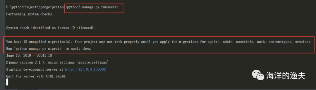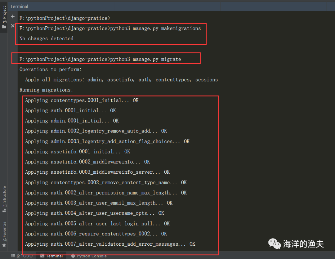 根据提示,下一步就是可以运行迁移数据库,创建表了。