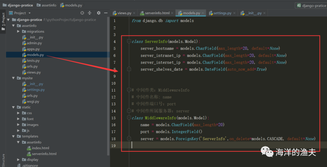 这是前面章节创建的服务器信息、中间件信息的数据模型,利用这两个模型,下一步来执行一下数据迁移,自动在mysql创建数据表。
