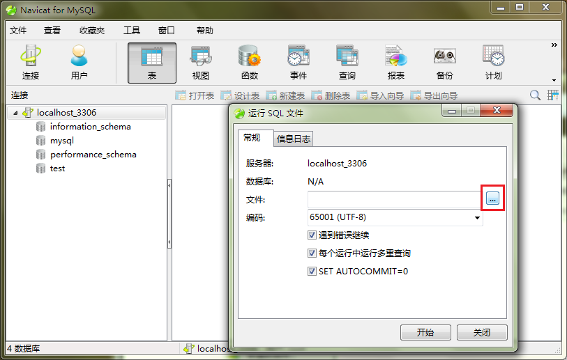 13、这里选择的是数据库表执行文件(自己准备一个sql文件),点击开始后执行。
