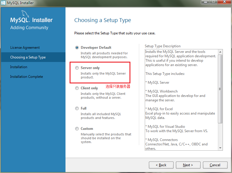 6、选择第二项:Server only,如下图:(这一步选择非常重要)