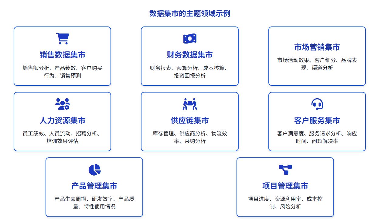 数据集市聚焦于单一主题或业务部门,如销售、财务、市场营销等,提供该部门所需的定制化数据视图。
