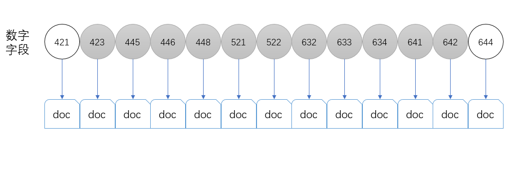 [423, 642],要找到字段大于等于423并且小于等于642的文档。