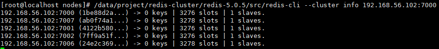 /data/project/redis-cluster/redis-5.0.5/src/redis-cli --cluster info 192.168.56.102:7000